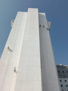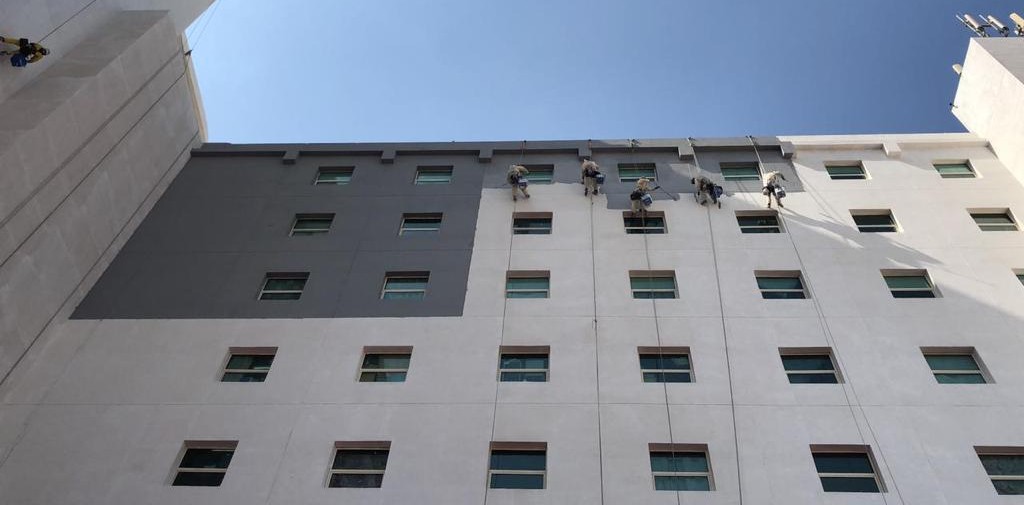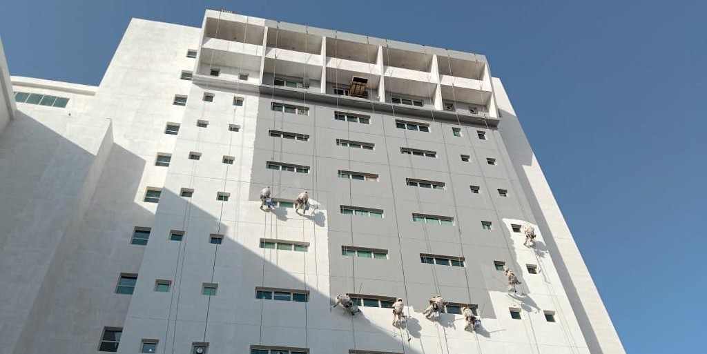 Spider Access mobilized a team of over 40 IRATA-certified rope access technicians, supported by QA/QC and HSE professionals, to execute the complex façade rehabilitation and finishing scope.